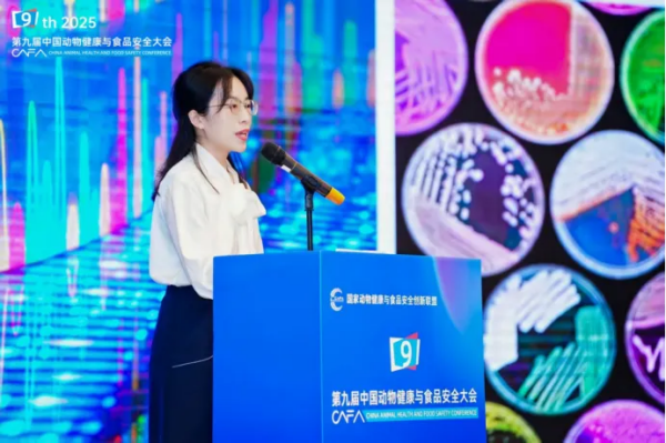 中国科学院青岛生物能源与过程研究所副研究员张佳(由周助理代讲)现场分享了基于原位代谢功能的“元拉曼组”技术在益生菌产品质检与菌株挖掘中的创新应用。她指出该技术能够有效推动益生菌产业质量管控与发展,但尚需进一步与实际产业融合;在未来将拓展元拉曼组在实时观测微生物功能方面的应用,助力动物健康与食品行业创新发展。