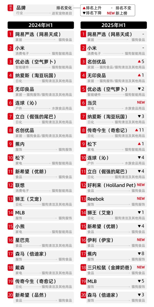 尽管市场竞争日趋激烈,但新品牌仍有机会快速崛起。2025年上半年,淘宝天猫跨界宠物品牌成交TOP20榜单中,排名变动率高达90%,显示出市场格局尚未固化,新入局者仍可通过差异化定位和精准运营实现反超。