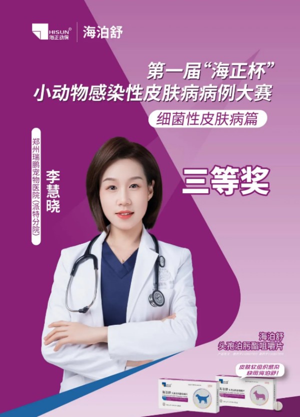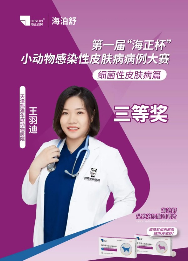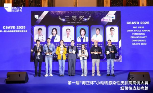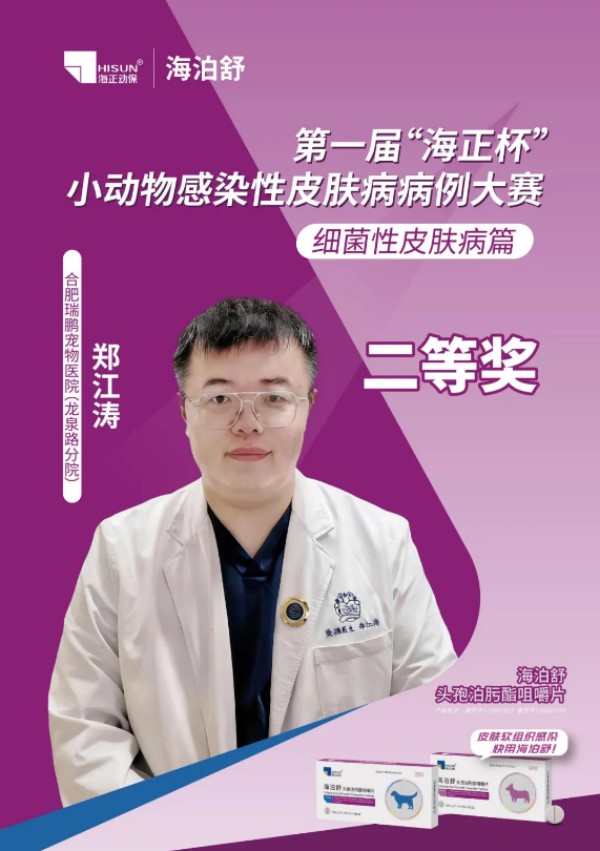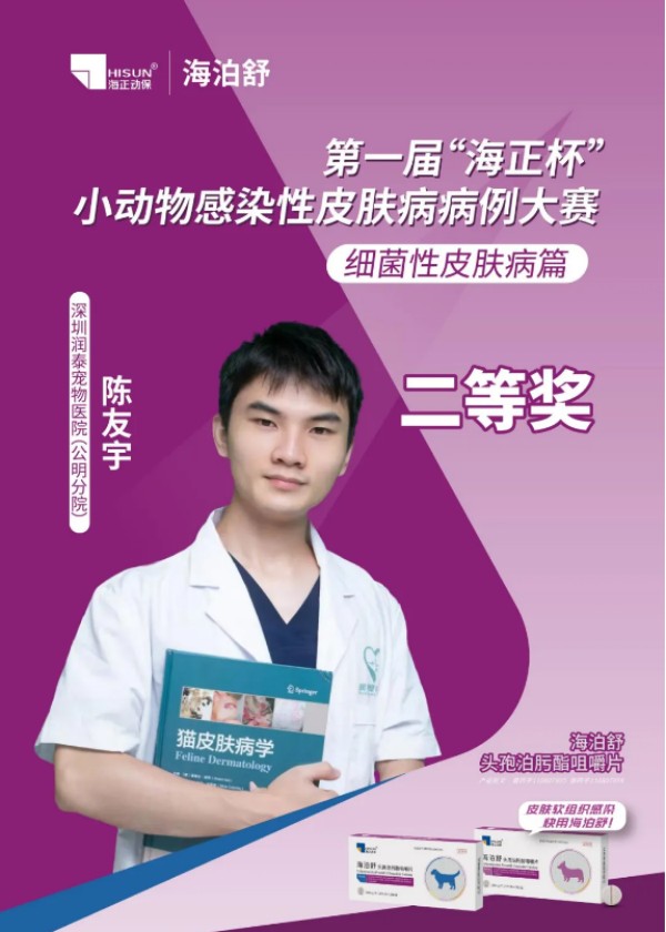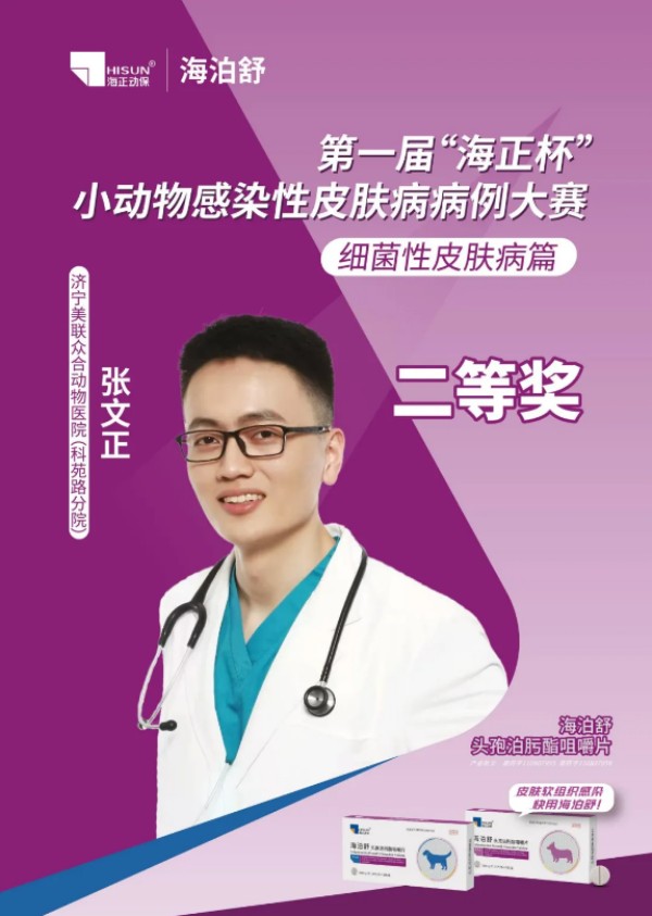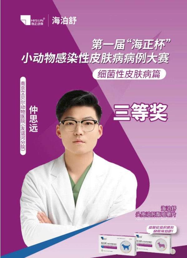 经过3个月的病例准备与评比,病例由权威专家——中国兽医协会皮肤专科委员会主任委员、北京美联众合动物医院转诊中心、新瑞鹏动物医疗集团皮肤科学科带头人刘欣老师带领的专家团队进行专业评审,经过层层筛选,10位参赛医生的优秀病例脱颖而出。让我们共同见证10强荣誉获得者的揭晓! 三等奖获得者6名 获奖者按名字首字母排序 二等奖获得者3名 获奖者按名字首字母排序 一等奖获得者1名 在活动的最后,海正动保宠物事业部产品部经理邓洪宇先生发表活动致辞。他提到,举办 “海正杯” 的初衷,是为全国宠物医生搭建专业交流平台,让大家通过分享海泊舒(头孢泊肟酯咀嚼片)的临床应用案例,共同探讨细菌性皮肤病诊疗难点,提升实战能力,合理使用抗生素。此外,海正动保也希望以赛事为纽带,汇聚行业智慧,推动小动物感染性皮肤病诊疗更规范、更高效。同时他预告 2026 年第二届大赛,真诚期待与各位宠物医生明年再聚! 感谢各位兽医师朋友的支持和参与,海正动保明年与你不见不散!