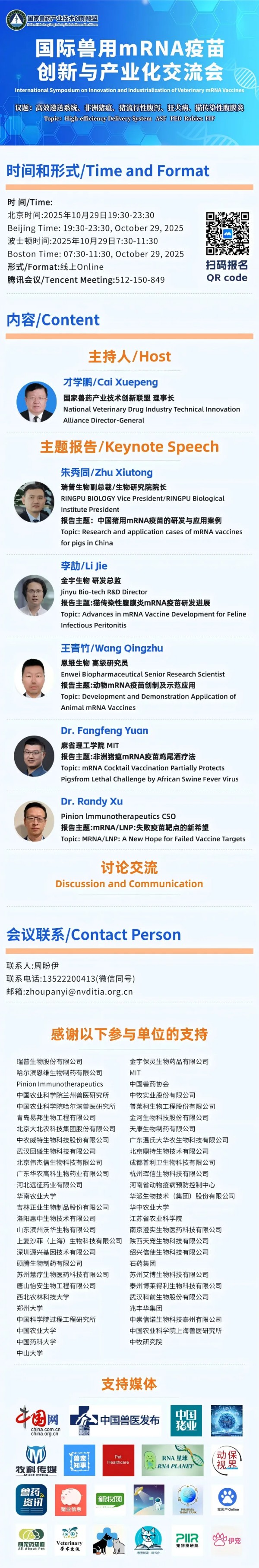 重磅嘉宾|恩维生物高级研究员王青竹将分享动物mRNA疫苗创制及示范应用