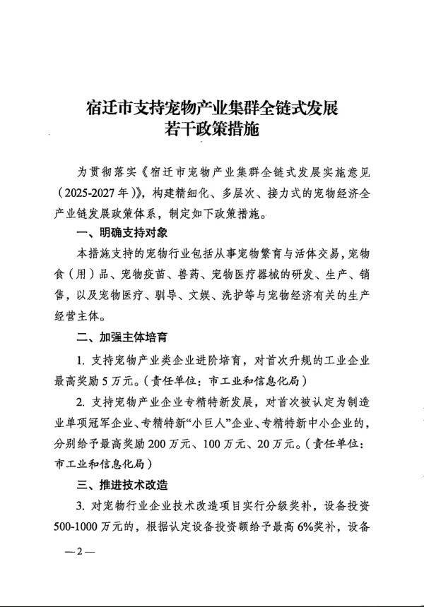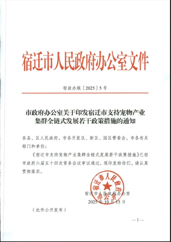宿迁市出台支持宠物产业集群全链式发展政策措施