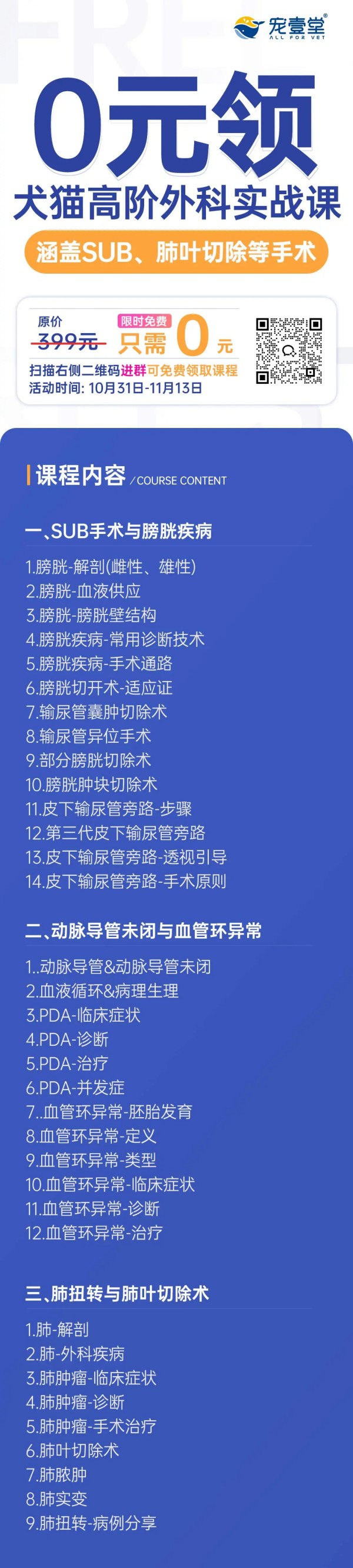 06 【预后沟通】 1.由外力作用下引起的膀胱黏膜的损伤,预后良好。 2.如果出现其他的并发症,需进一步与主人沟通。比如骨盆骨折,脾脏破裂,肝脏破裂及肾损伤。 3.膀胱破裂的动物手术修补后需要24h密切观察生命体征及血液指标。