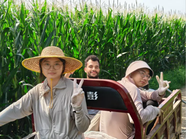 在项目推进过程中,团队成员各司其职又密切配合:王山聪把握技术方向与项目进度,统筹全局,常在深夜实验室与成员深入探讨;刘贺埕、胡心如则化身“技术翻译官”,负责示范田建设与管理,还摸索出接地气的沟通方式。刘宁戈、孟凡正等成员甘当“田间特种兵”,顶着近40℃的高温在大田里穿梭,负责关键数据的采集与验证;国际留学生Reda也从最初的语言不通,逐渐成为团队技术推广的“跨文化桥梁”。
