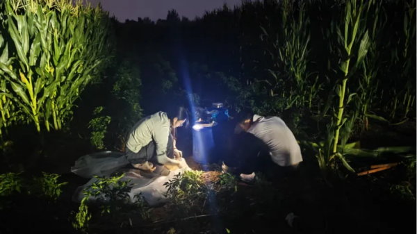 团队成员在试验田监测数据