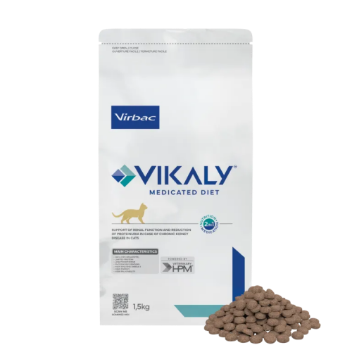 Vikaly适用于对国际肾病分期系统(IRIS)二期患有蛋白尿的成年及老年猫进行营养和医疗管理,以治疗慢性肾病(CKD)。