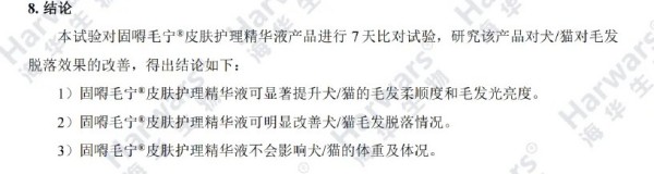 2) 固嘚毛宁®皮肤护理精华液可明显改善犬/猫毛发脱落情况