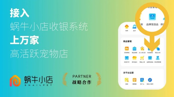 除了宠业家app和小程序,宠业家品牌馆还接入了国内领先的宠物店收银系统蜗牛小店。超过7万家蜗牛小店系统的注册宠物店,可以通过收银系统app直接浏览访问宠业家线上展的品牌馆,了解品牌信息、最新产品并提交合作需求。