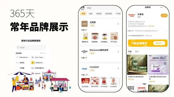 通过提供在线展位和产品展示,以及合作信息发布功能,宠业家线上展具备和线下展会类似的品牌和产品展示、合作信息展示功能,区别是展示时间不受时间和场地限制。