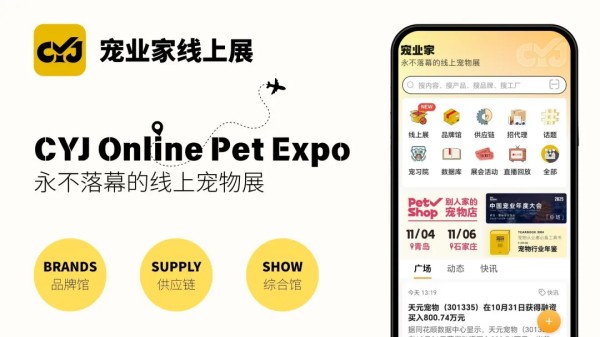 作为生意交流最重要的核心平台之一,宠物展会形态迎来全新升级。宠业家发布了全新的宠物行业资源对接平台——宠业家线上展,从9月底在成都宠博会期间亮相以来,已入驻展商578家,对接宠物行业代理、采购需求超过3000次,为宠物全产业链上下游商家提供线上线下全天候贸易对接服务。