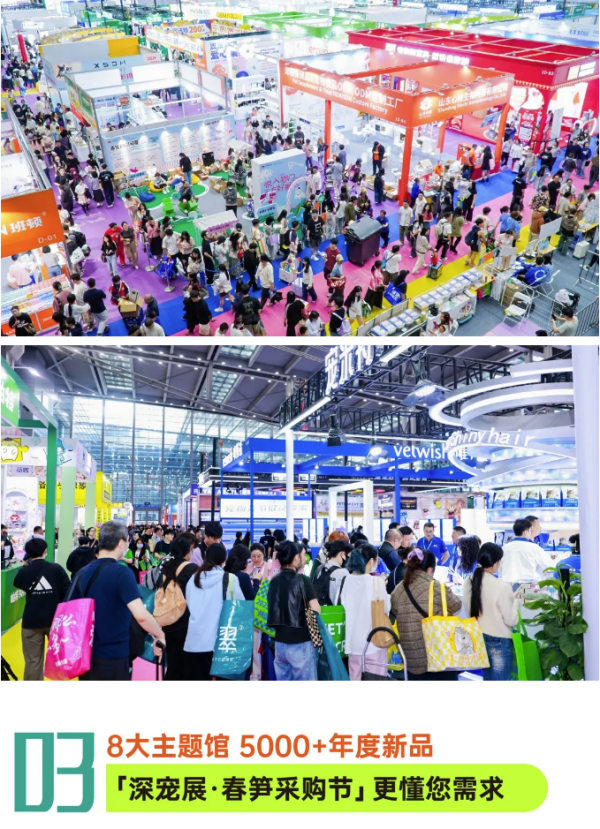 本届深宠展,90000㎡+展出面积,1000+海内外展商、10000+知名品牌入驻!现场集结宠物主粮、零食、用品、保健品、清洁洗护、医疗等全产业链资源,一站式满足经销代理商、零售门店、国内电商、跨境电商等不同渠道买家采购需求。