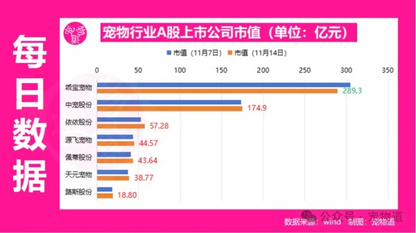 上周,沪指创出十年新高,宠物经济板块指数(BK0993)实现五连阳,周涨幅为4.02%。个股方面,仅乖宝宠物市值较上周缩水,其余六家公司均实现上涨,依依股份、佩蒂股份涨幅居前,分别为8.28%、7.15%。