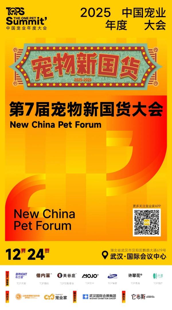 第七届宠物新国货大会将于2025年12月24日,在武汉国际会议中心举行,在此特别感谢布兰德,倍内菲,关谷庄,魔球,MAG,许翠花,小沐作为TOP赞助商对本次宠物新国货大会的大力支持。2025年宠物新国货TOP赞助商在线展