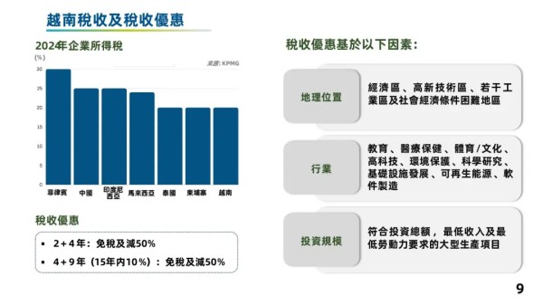 这是越南投资最“香”的政策之一。张政择介绍,越南实行分区域税收优惠:南部地区企业可享受“两年所得税全免、四年减半”;中部地区政策更优,“四年全免、九年减半再减半”,相当于前15年企业所得税可低至5%-10%。“前三年启动期,即便企业没有盈利,政府也完全接受,真正降低了初期运营压力。”