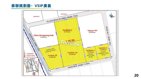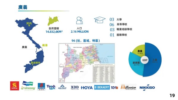 张政择重点介绍了泰联在越南中部广义省打造的工业园项目:该园区位于芽庄与岘港之间,紧邻高速公路出口,距离岘港国际机场仅 127 公里,周边坐拥三个国际港口与火车站,明年河内-胡志明高速通车后,交通物流将更为便利。园区总规划 12 万平米,目前一期建设正稳步推进,预计明年五月底竣工,配套 6000 平米写字楼,可满足企业生产与办公需求。园区还全面规划了太阳能供电、水循环系统,提前适配 GRS 回收标准,契合环保可持续的国际趋势。
