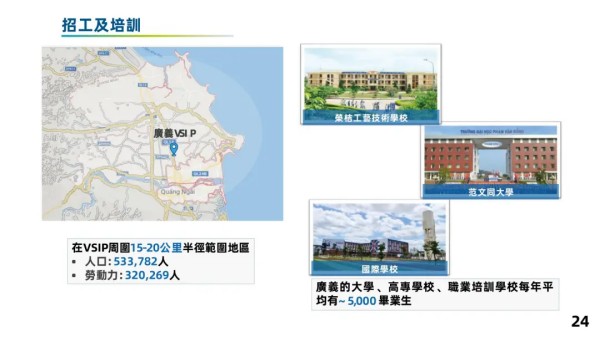 除了完善的硬件设施,园区周边的生活与人才配套也颇具吸引力。20 公里范围内常住人口达 53 万,周边分布着大学、技能学校与国际学校,既方便企业招聘专业人才,也能满足高管子女的教育需求。购物商场、球场、餐厅、高尔夫球场等生活设施一应俱全,为员工提供了舒适的生活环境。值得一提的是,该园区在 2014 年越南排华事件中毫发无损,且能从容应对台风暴雨等自然灾害,安全稳定性得到了实践检验。