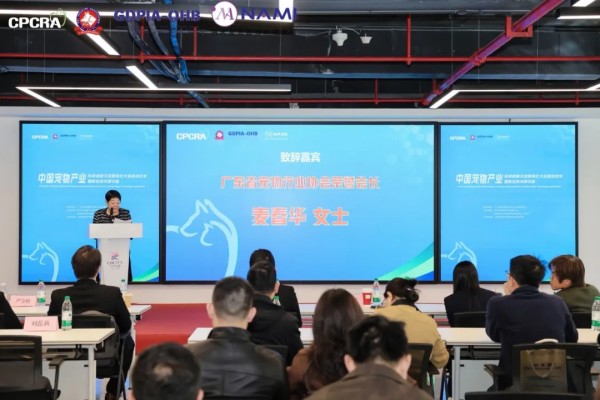 随后的开幕致辞上,广东省宠物行业协会荣誉会长麦春华女士、常务副会长兼大健康分会会长王磊先生,以及香港纳米及先进材料研发院(NAMI)保健部门技术总监陈咏敏博士分别致辞,从行业趋势、政策导向与技术突破等多维度,为大会奠定了“创新驱动、合作共赢”的基调。
