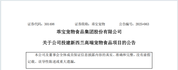 02 乖宝宠物9.5亿元新西兰建厂 来源:山东商报