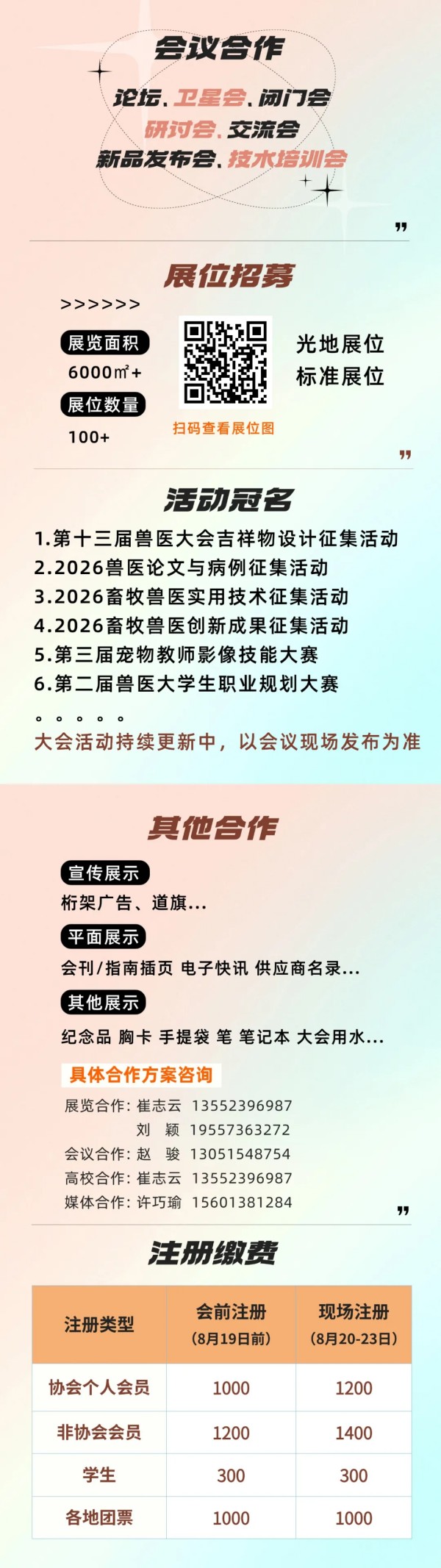 来源:中国兽医协会 中国兽医协会第十三届兽医大会 暨2026畜牧兽医用品展览会 2026.8.21-8.23 山东济南 主办单位:中国兽医协会