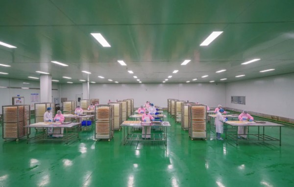 海派宠食的青岛工厂聚焦烘干类产品,依托毗邻港口的地理优势,更加便于赋能海外市场拓展,年产烘干宠物食品 1500 吨,产值达5千万元;而此次走访参观的海派宠食日照工厂,则主攻冻干系列,配备 5 条 200 坪冻干仓及复合单冻机产线,后续新增主食冻干餐盒自动化产线,年产冻干产品 2000 吨,产值高达1亿元,主要承接国内高端品牌 OEM/ODM 订单与海外超市订单。