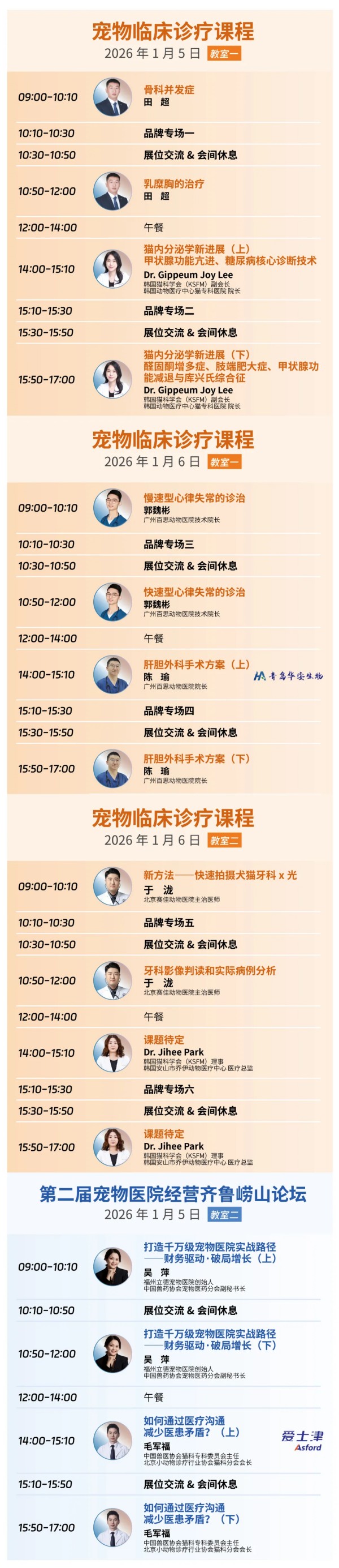 尤为值得期待的是,本次大会特别邀请到两位来自韩国的猫科医疗权威专家——韩国猫科学会(KSFM)副会长、韩国动物医疗中心猫专科医院院长Dr. Gippeum Joy Lee、韩国猫科学会(KSFM)理事、韩国安山市乔伊动物医疗中心医疗总监Dr. Jihee Park莅临分享。作为国际猫科诊疗领域的资深学者与实战专家,两位老师将带来前沿诊疗理念与临床经验,为大会增添鲜明的国际交流特色。