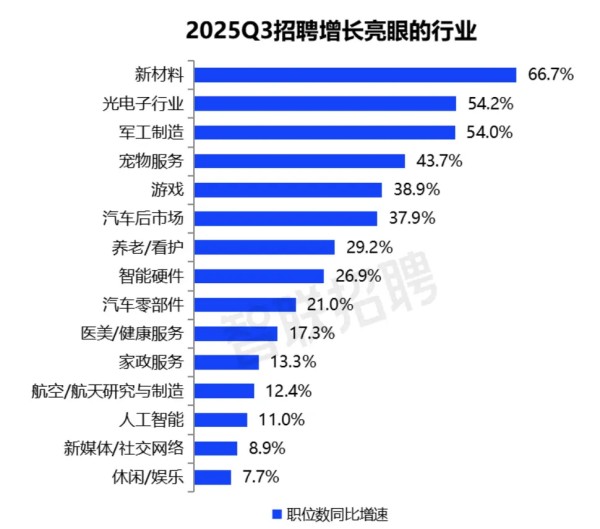 进入到三季度,这一增长势头依然强劲。《2025年三季度人才市场热点快报》显示,先进制造业和现代服务业仍是招聘增长的主力领域,而宠物服务行业作为现代服务业的重要分支,第三季度招聘职位数同比增长43.7%,延续了第二季度的高景气度。其中,宠物医生、宠物美容岗位的增速尤为突出,分别达到128.2%和67.3%,这一现象或与居民消费结构升级、情感消费需求持续强化密切相关——如今宠物在家庭中的角色愈发重要,主人对宠物的健康护理、形象管理等需求也随之升级,这些需求的产生直接带动了相关岗位的人才缺口。