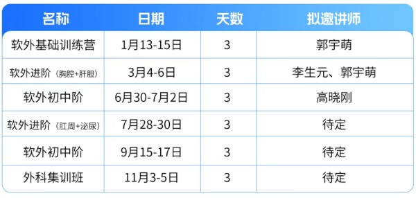理论、实操双教室,为参课学员提供早午餐及住宿,设备与物料充足,专业设备(如手术床、无影灯、高清视频投影等)舒适专业教学环境,帮助学员快速掌握专业技能。