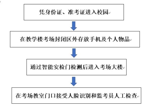 3. 考生如携带了手机,请务必提前到达教学楼外围,由考生本人将手机存入指定手机柜,然后取走钥匙,通过智能安检门检查后进入考场封闭区,考试结束后考生本人取回手机。