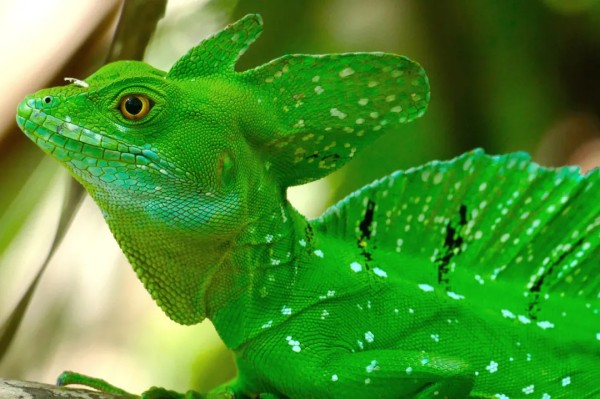 荷苏蜥的原型是原产自中美洲地区的双冠蜥Basiliscus plumifrons,英文名字有很多,常用的用green basilisk和Jesus Christ lizard。前者中basilisk直译为是巴吉里斯克,是《荷马史诗》中记载的一种蛇形怪兽,所以双冠蜥有时会被翻译成“蛇怪蜥蜴”。后面这个名字就更有意思了,直译为耶稣蜥蜴。叫这个名字是因为它可以像传说中的耶稣那样在水面行走,虽然实际上双冠蜥在水面行走时并不优雅,甚至很滑稽……