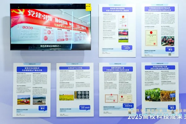 “农业黑科技”集锦 华农精彩亮相2025科交会 2025中国高校科技成果交易会现场 华农展区 无人农机在田间工作 智慧农业展区,无人化智慧农场系统成为焦点。这套集成智能感知、自主决策、精准作业等核心技术,实现耕种管收全程无人化作业,截至 2024年底,已在16个省(市)启动了 30多个智慧农场的建设,包括水稻、小麦、玉米和花生,为解决“谁来种地”和“如何种地”提供了重要途径。 绿色技术领域同样吸睛。针对重金属污染农田这一“老大难”问题,华农团队研发的“重金属污染农田绿色修复与安全利用技术及工程应用”,通过生物修复与安全利用技术创新,实现污染农田的安全高效利用,为耕地保护与粮食安全提供技术保障。 “优质高抗香型航天水稻新品种选育及推广”实物展示 节水抗旱稻 现代种业展台上,集中呈现“水稻精量穴直播技术与机具”“节水抗旱稻”“香稻增香增产技术”“北豆南移”及“不同熟期优质荔枝系列新品种”等突破性成果,其中香稻技术累计应用9000多万亩、助农增收200亿元,荔枝新品种及高接换种技术推广50余万亩、年新增利润14亿元。 华农部分科技成果实物展示台 畜牧兽医领域重点推介“重要动物源性人兽共患病防控关键技术”“提高母猪生产性能中药新产品”“种鸡禽白血病抗性选育创新技术”,构建从疫病防控到生产性能提升的全产业链技术体系。 木塑复合材料关键技术相关报道 新材料与资源利用展示“多元复合协同增效制造高性能功能化木塑复合材料关键技术”“低质速生材制造高品质复合层积材关键技术”“有机废物高值绿色循环利用装备”,推动农业废弃物资源化高值利用。 成果转化成效: 从数字到产业的跃迁 这些“硬核”资源,正转化为实实在在的生产力。 华农温氏签订2024-2028年行动任务协议 在与产业巨头的深度合作中,华农创造了“华农温氏模式”这一行业标杆。三十余年来,温氏集团提供资金支持华农开展定向研发,华农则为温氏输送核心技术与高端人才,通过“技术、资本、人才、利益、责任”的“五个捆绑”,将高校科研能力与企业市场嗅觉完美结合。这一模式培育出12个畜禽新品种,获发明专利300余件,制定国家标准20余项,累计带动4万多农户致富,户均年收入超20万元,成为全国农业产业化合作的典范。 荔枝新品种“仙桃荔”,个头比普通鸡蛋还稍大一点 在种业“芯片”这一“卡脖子”领域,华农成绩单亮眼:水稻新品种“华航香银针”、荔枝优新品种“仙桃荔”、节水抗旱稻等一批标志性成果实现千万级转化,显著提升了产业核心竞争力。在推广应用过程中,学校首创“品种权区域独占授权”转化模式,引领大宗农产品成果转化新范式。 据介绍,在突破性早熟优质荔枝新品种的推广应用过程中,华农团队打造了集品种权保护与产业化推广于一体的创新体系,通过授权茂名等地企业区域独家生产经营权,建立标准化种植与品牌运营体系。该模式建立了双轨维权机制:由区域代理商负责侵权监督与执行,校方提供技术支持,有效解决了无性繁殖作物维权难、推广慢的产业痛点,实现了科技成果快速转化。目前代表品种“仙桃荔”(早巨荔1号)亩收益达传统品种2倍以上,预计年产值超10亿元,为我国荔枝产业升级和无性繁殖作物品种转化提供了可复制的华农方案。 近年来,秉持“企业出题、高校答题、市场阅卷”的理念,华农构建了“立体化、全链条”的融合体系,通过专利转让、技术许可、作价入股等多种形式,加速科技成果产业化。截至2025年1月,学校拥有有效专利5530项、植物新品种权201件、审(评)定新品种422件,专利授权量持续位居全国农林高校前列。 “十四五”期间,学校累计签订横向科技合同(含成果转化)5538项,合同总金额突破16亿元;其中技术成果转化合同376项,转化收益超1亿元,真正实现了“把论文写在大地上,把价值体现在产业中”。 华农紫金蝉茶团队建立的茶小绿叶蝉的室内种群 此外,紧扣地方所需,华农通过“双百行动”乡村产业发展高校联盟,建设“华农优品”线下线上平台,搭建科技成果农优特产品产业营销链条,助力紫金蝉茶、高州荔枝、阳山西洋菜、从化畜牧食品、河源航天丝苗米、郁南黄皮、德庆贡柑等走进国企、走进高校、走进社区,累计帮扶销售额过百万;依托“万名学子乡村大调研行动”,持续优化“华农优品”直播平台,单日最高直播销售破万元。 与此同时,服务决策与人才培养协同推进。近三年,华农已累计向各级政府部门提交决策咨询报告200余篇。依托“永根科技站”等平台,派驻258名研究生常驻生产一线,年均开展技术培训超千场、培训人员10万人次。学校研发的节粮环保猪、南方大豆等科技成果成功输出至巴西、非洲及东南亚地区,为我国参与全球粮农治理贡献华农智慧。 站在“十五五”开局之年,华农正绘制更加宏伟的转化蓝图。学校将深化职务科技成果赋权改革,破解“不能转、不敢转”难题;构建全链条服务体系,建强科技成果转移转化机构与专员队伍,推动大学科技园成为成果孵化与创业育成高地;推动精准对接与模式创新,强化产学研协同与典型宣传,拓展“华农科技成果直通车”等品牌活动,探索多元化转化模式,支持师生共创与学科性公司发展;加强国际化布局,推动优势成果对接“一带一路”共建国家,提升农业科技开放合作水平。 