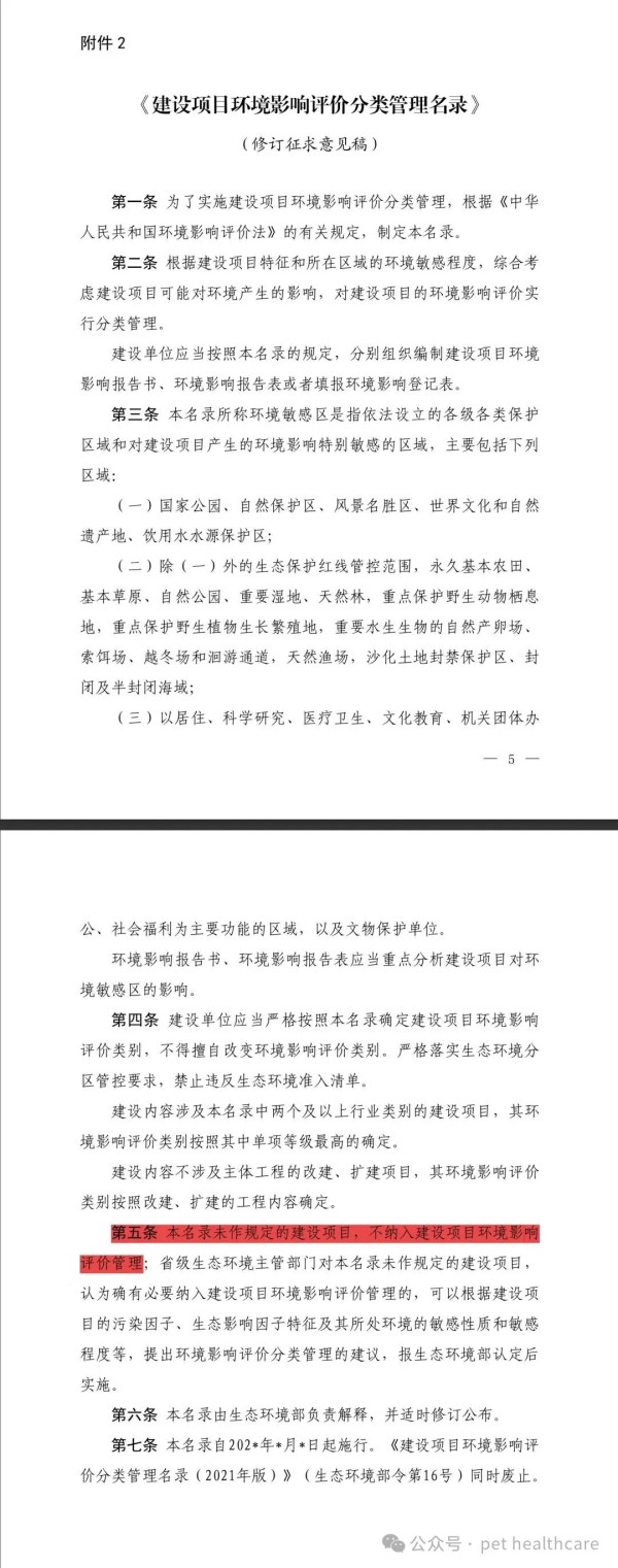 其中一项关键调整是:“动物医院”项目从原有的报告表管理类别,被正式调整为“不需要办理环境影响评价”的类别,实现全流程豁免。