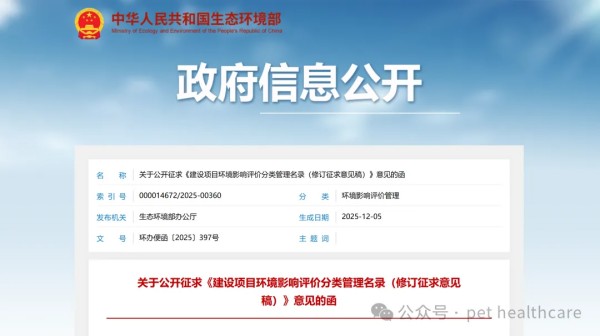 目前,这份关乎千万宠物医疗从业者的改革文件正处于公开征求意见阶段,截止日期为 2026 年 1 月 5 日。生态环境部提醒,在最终文件正式出台前,各地仍需按现行规定执行环评审批。