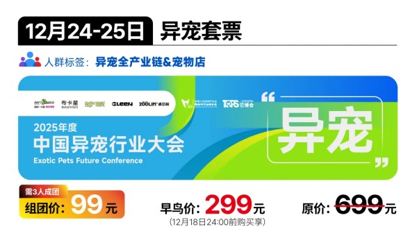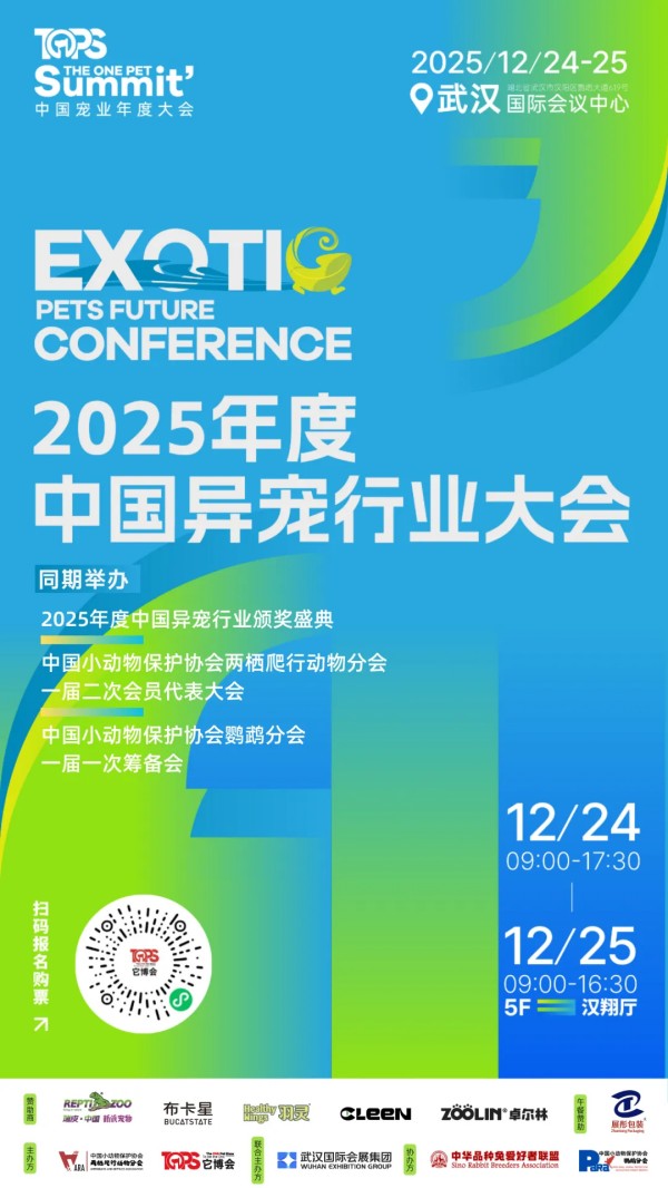 02 两爬产业深耕 两爬产业深耕板块聚焦两爬品类的核心发展痛点与机遇,围绕异宠达人运营攻略、两爬造景业态发展困境、下一代明星物种预判等内容展开深度研讨,直击两爬繁育、流量运营、市场布局的核心问题。此外,中国小动物保护协会两栖爬行动物分会一届二次会员代表大会也将同步召开,总结行业发展成果,部署后续规范发展规划,推动两爬产业的合规化与专业化升级。 03 鹦鹉大市场板块是本届大会的重点新增内容之一,将全方位解读鹦鹉赛道的发展前景。从鹦鹉产业趋势报告、高端繁育模式变革,到品牌突围方向、行业下一个爆发点预判,多维度拆解鹦鹉品类的破圈逻辑。同时,中国小动物保护协会鹦鹉分会一届一次筹备会将正式启动,助力鹦鹉行业搭建交流协作平台,推动品类的规范化与规模化发展。 04 开拓新兴品类增量空间 小宠赛道挖掘板块瞄准仓鼠、兔类、豚鼠、龙猫、蜜袋鼯、宠物松鼠等小宠品类的发展潜力,探讨小宠品牌从“小众”到“大众”的出圈路径,以及小宠产业升级的实操指南。通过圆桌研讨梳理小宠品类的选育、饲养、诊疗等核心技术要点,结合消费下沉趋势分析三四线城市市场开拓策略,为小宠行业的发展挖掘新的增量空间。 12/24-12/25 2025年度异宠行业大会 武汉·国际会议中心 (武汉市汉阳区鹦鹉大道619号)