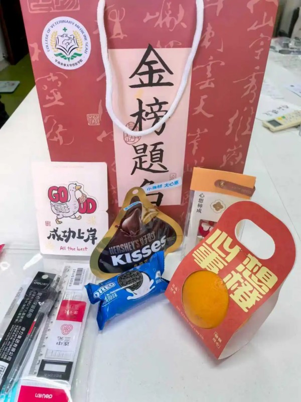 2025届考研取得优异成绩的张鑫鑫和陈婧儿,以自己的过往经验,分享了冲刺阶段调整心态、高效分配复习时间以及应对考试突发状况的应对策略,为即将踏上考场的学弟学妹们提供了宝贵的实战经验和心理支持。 为表达对考研学子深切的祝福与鼓励,学院领导还精心准备了寓意丰富的加油礼包,其中包括“橙”意满满的橙子、象征“好事”发生的巧克力、“奥利给”的饼干、心想“柿”成的香包、老师们亲笔写的祝福卡片以及妙“笔”生花的文具套装,寓意着同学们在考研战场上能够大展锋芒,收获满满。 这份沉甸甸的关怀如同冬日暖阳,极大地鼓舞了在场的每一位学子,他们纷纷表示将铭记学院的深情厚谊,以必胜的信念和扎实的行动,回馈学院的殷切期望。