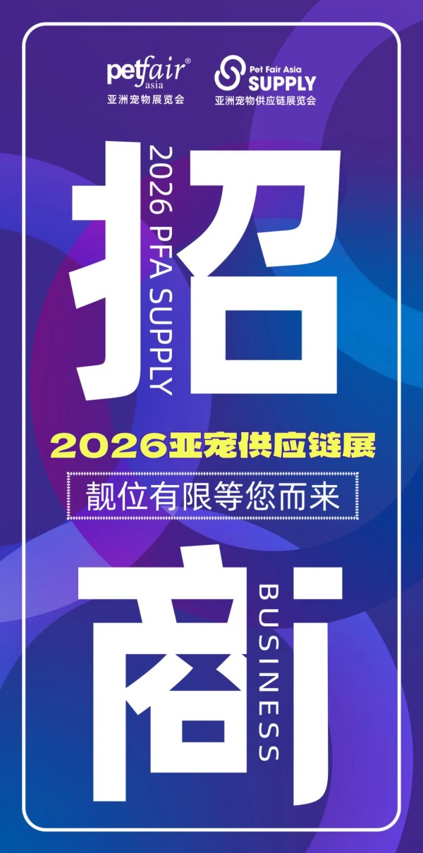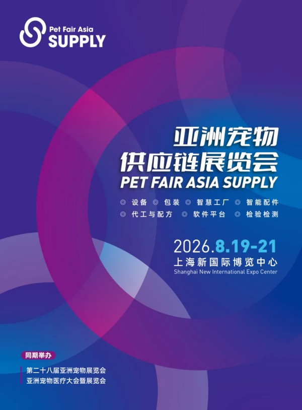 近年来,中国宠物相关业务市场规模呈现高速增长态势。根据Statista数据,2015年,中国宠物市场规模为978亿元。随着中国社会消费升级和宠物产业生态的日趋完善,中国宠物市场进入高速增长期,至2023年已突破5,928亿元,年复合增长率高达25.4%。预计2025年,中国宠物市场规模将进一步攀升至8,114亿元,宠物经济发展势头强劲,庞大的宠物基数及其持续增长的趋势,将催生巨大的市场需求。 供应链作为支撑产业高质量发展的核心枢纽,正经历深刻变革。一方面消费需求日趋多元与细分,从传统猫狗延伸至水族、异宠等领域,推动供应链向多品类、定制化、柔性化方向演进;另一方面,智能化、数字化浪潮席卷全链,智慧工厂、物联网监测、AI品控等技术广泛应用,大幅提升生产效率与产品可追溯性。同时,绿色可持续理念深入人心,环保包装、低碳物流与可循环材料成为供应链创新重点。 在此背景下,2026年亚洲宠物展同期亚洲宠物供应链展览会,不仅是前沿技术与产品的秀场,更是上下游精准对接、共探趋势、构建信任的重要平台,为产业升级注入持续动力。 2026亚洲宠物供应链展览会规模展再度升级,扩大至10个馆,展出面积扩至70000m²,聚合900+家高品质供应企业,涵盖设备、包装、智慧工厂、代工与配方、第三方与服务类等5大板块及31个细分品类。借势PFA品牌的国际影响力,帮助供应链产业上下游搭建价值交流平台,展示国际前沿的宠物产业供应链生态。 目前展位已售出超 73% 供应链馆仅剩少量优质席位 数量有限,欲订从速! 规模空前,尽览全局 覆盖宠物全产业链的一站式超级平台,10大展馆,规模空前!汇集900+供应链展商同台竞演,满足一站式采购需求。 前沿趋势,引爆关注 智慧工厂、柔性制造、可持续方案……行业最前沿的趋势在此集结。主流平台超强传播阵容,助力产品火速出道,引爆行业关注。 内容升级,前沿主题 全新PFA Supply供应链大会,涵盖更加多元主题,探讨供应链升级、产品包装、柔性制造、数字化能力、本地化设计和营销、成本控制、透明化管理、精益运营等 高效对接,链接全球资源 借势亚宠展品牌的国际影响力,汇聚全球品牌商、零售商及电商巨头,带来前所未有的高效对接机会,实现订单翻番。 *以上排名不分先后 靓位有限,商机无限,报名参展请从速: 电话:+86 21 6195 6088 邮箱:pfa@globusevents.com 市场及媒体合作: 朱女士: 电话:+86 21 6195 6046 邮箱:winnie.zhu@globusevents.com