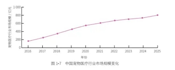 2025年中国内地宠物医疗市场规模约803亿元人民币,约占整个宠物市场的25.1%。宠物医疗占比呈现上升趋势。