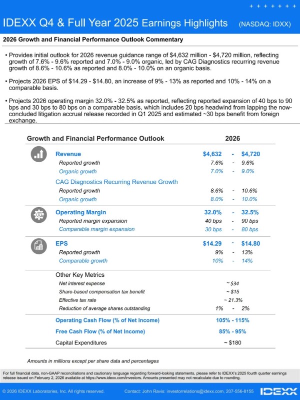 爱德士公司(纳斯达克股票代码:IDXX)今日公布了2025年第四季度及2025全年业绩。