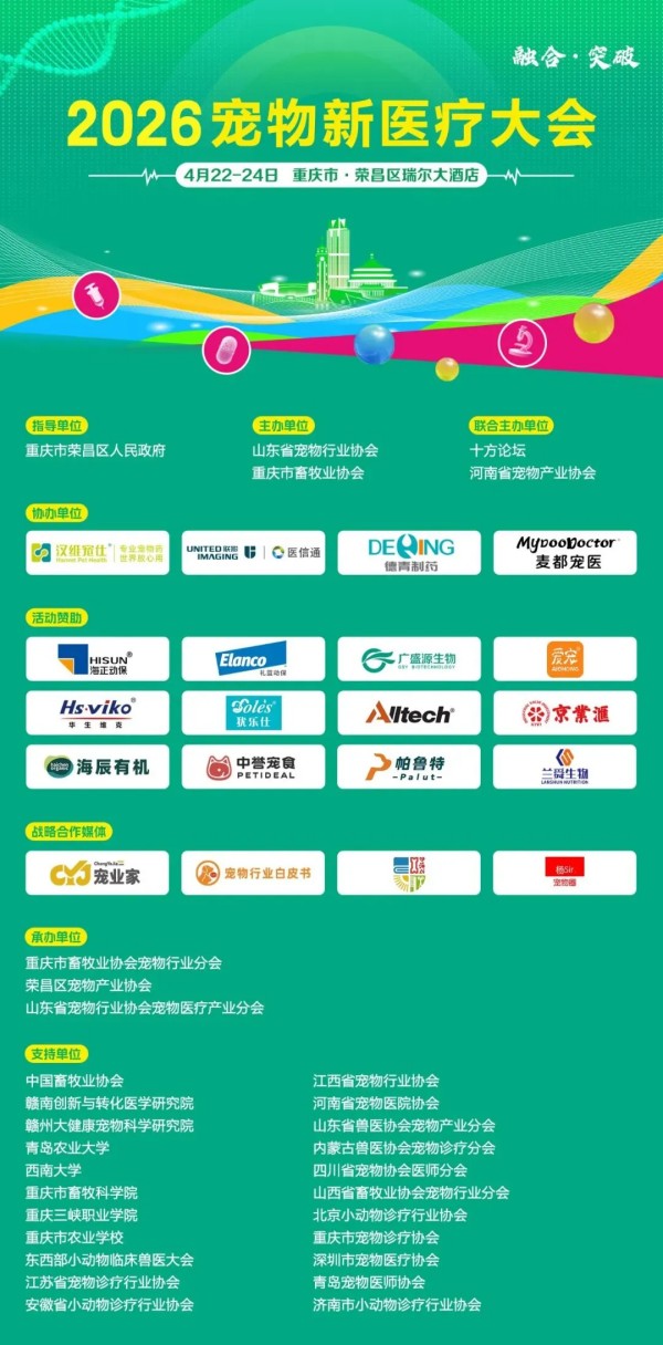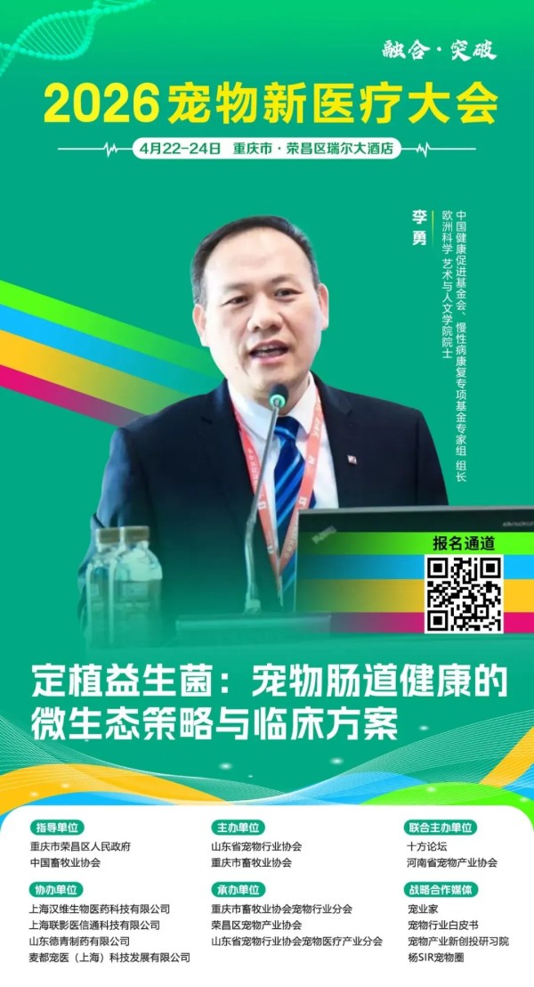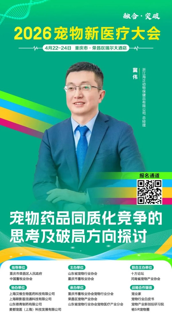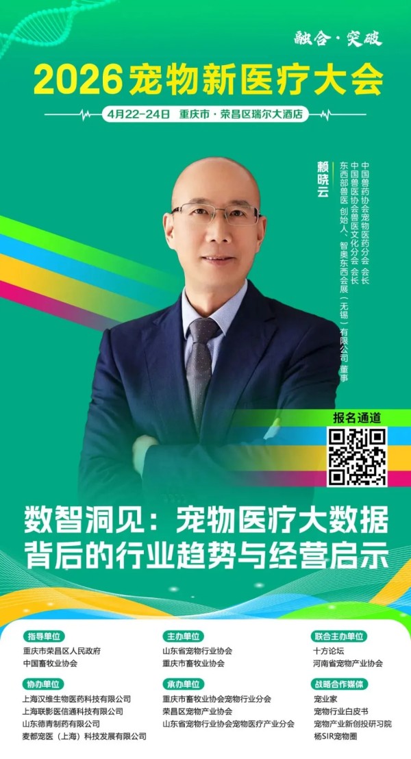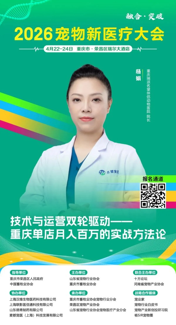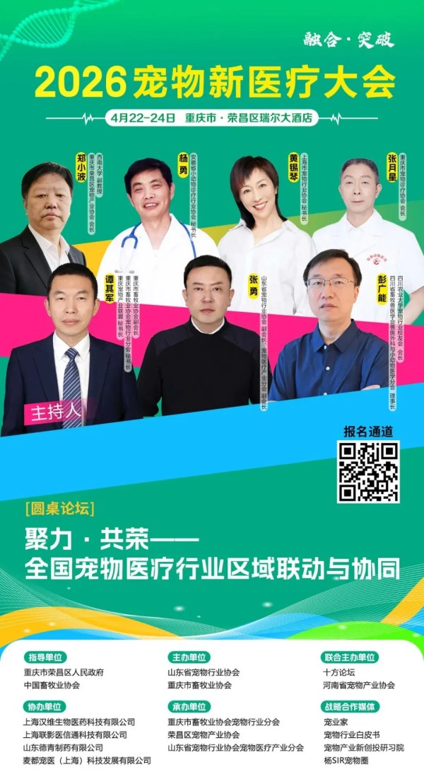 从院士前沿成果到单店实战经验,从全产业链对话到Z世代洞察,从数字化人才战略到荣昌产业机遇,2026宠物新医疗大会将呈现一场内容丰富、视角多元、价值深远的行业盛会。