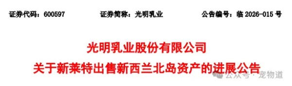 4月3日,光明乳业发布公告,其子公司新西兰新莱特,出售新西兰北岛资产项目正式完成交割,已收到相关款项。这笔跨国交易,对价1.7亿美元(约合12.1亿元人民币),收购方为新西兰雅培公司。